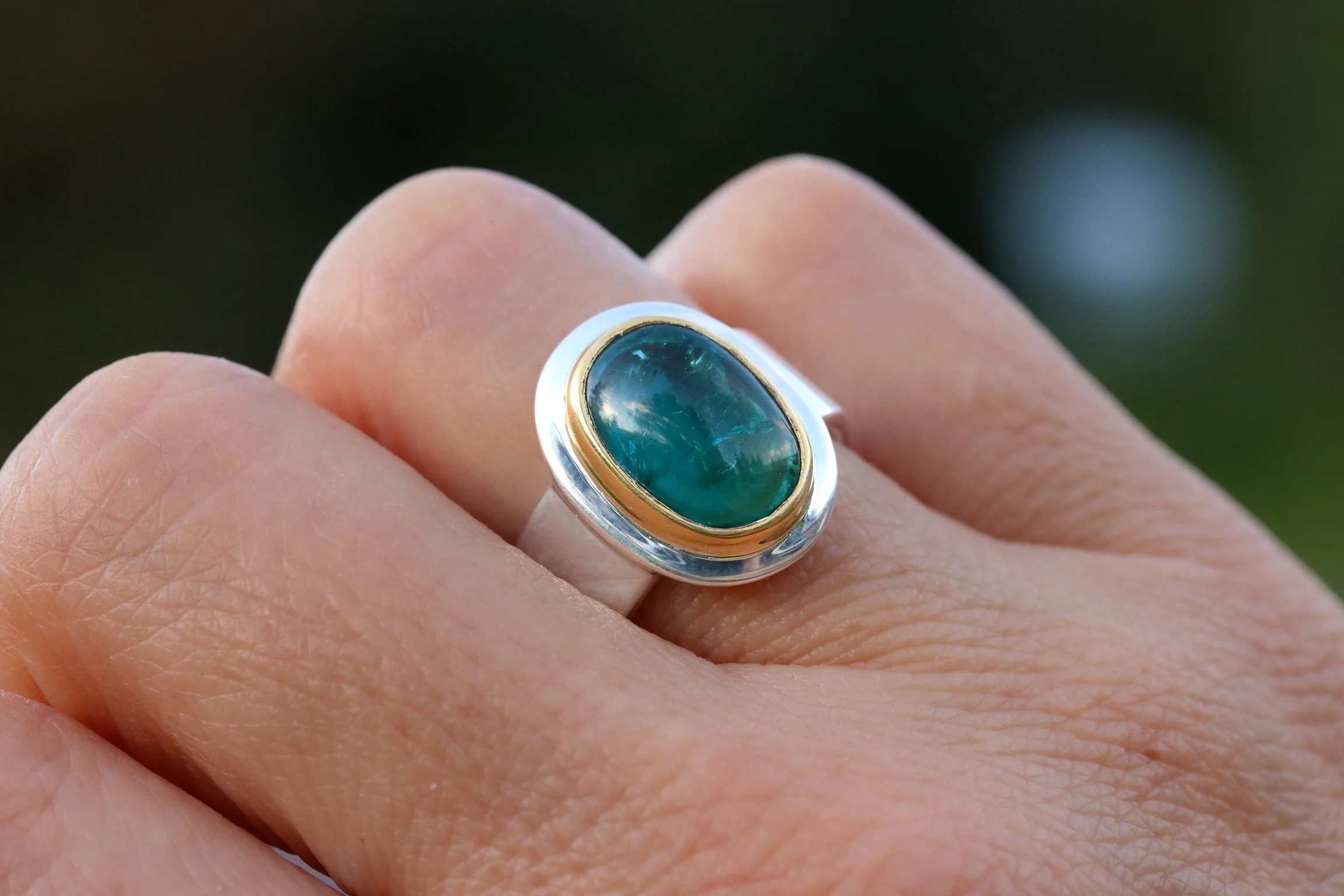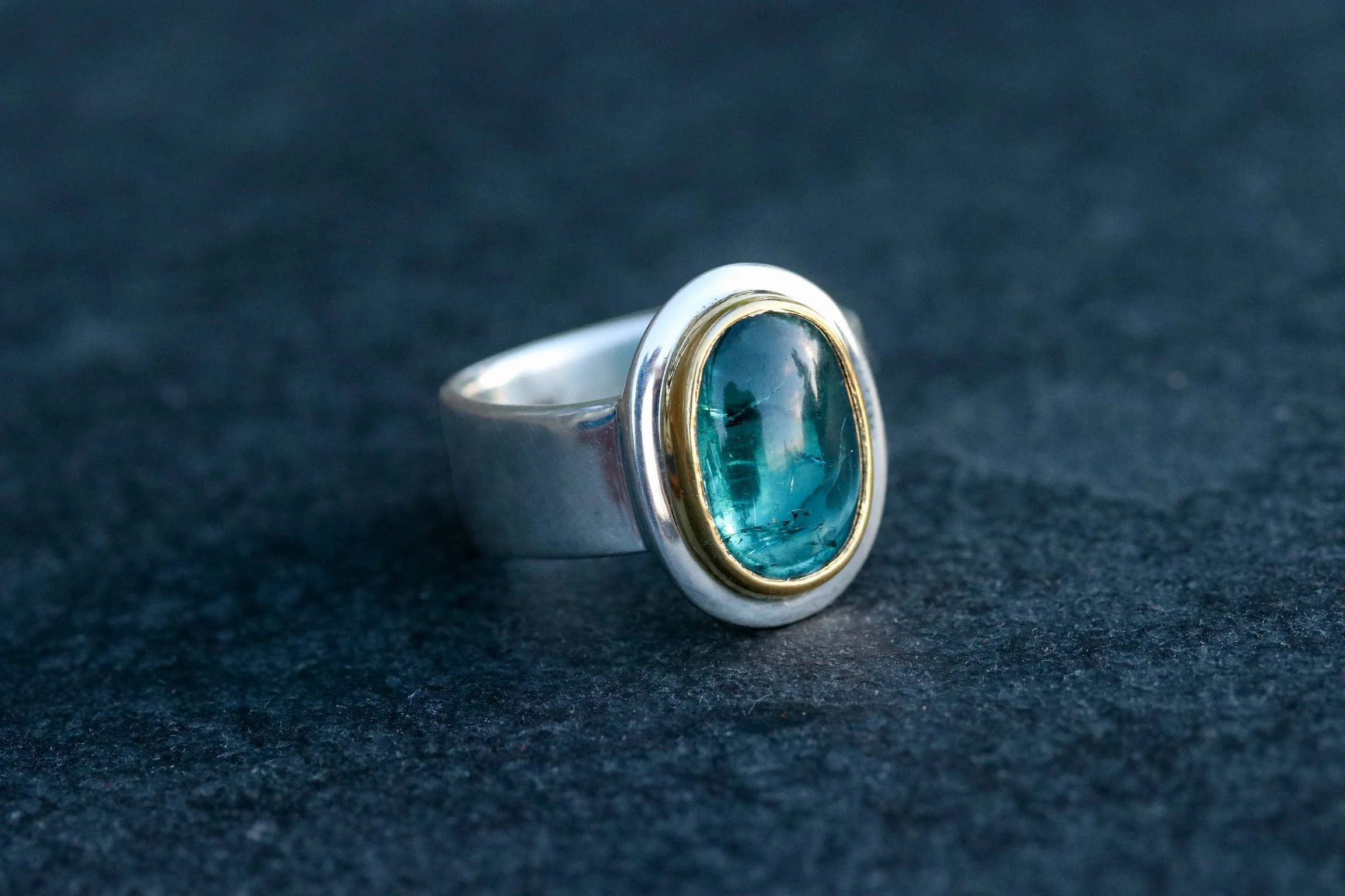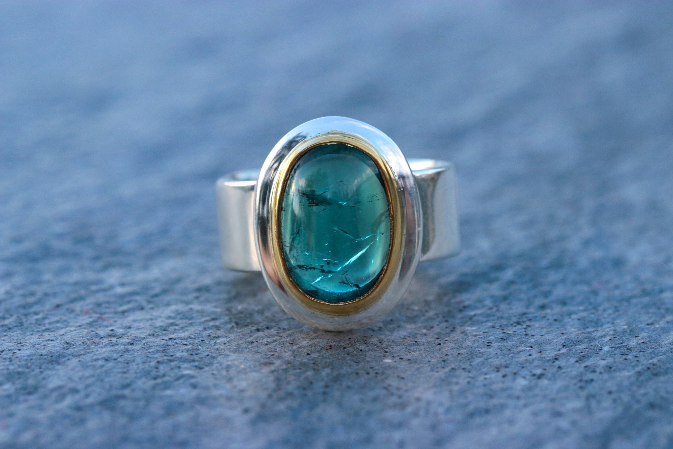 Shop › Big Sur Classic - Indicolite Lozenge Image 1 of 3 Image 2 of 3 Image 3 of 3 Big Sur Classic - Indicolite Lozenge $1,050.00 sold out Indicolite Tourmaline, 22K gold and silver. Size 6.5 Sold Out Added! Indicolite Tourmaline, 22K gold and silver. Size 6.5