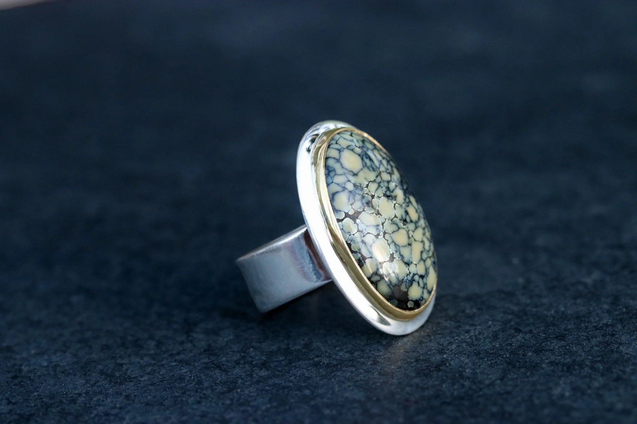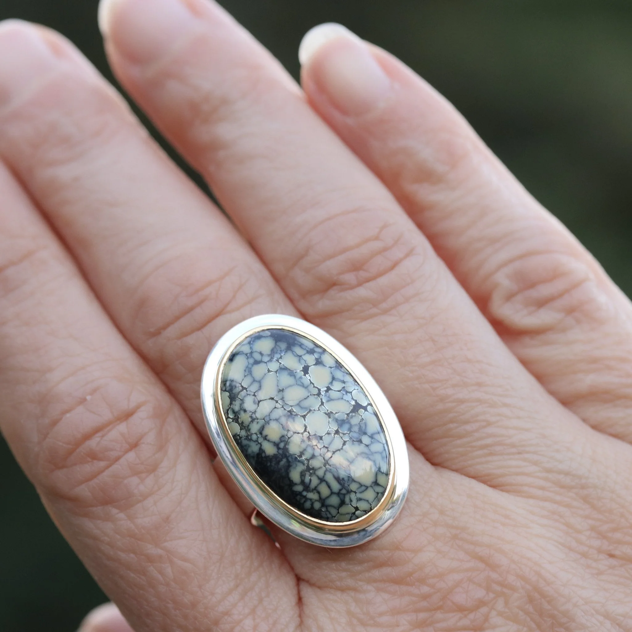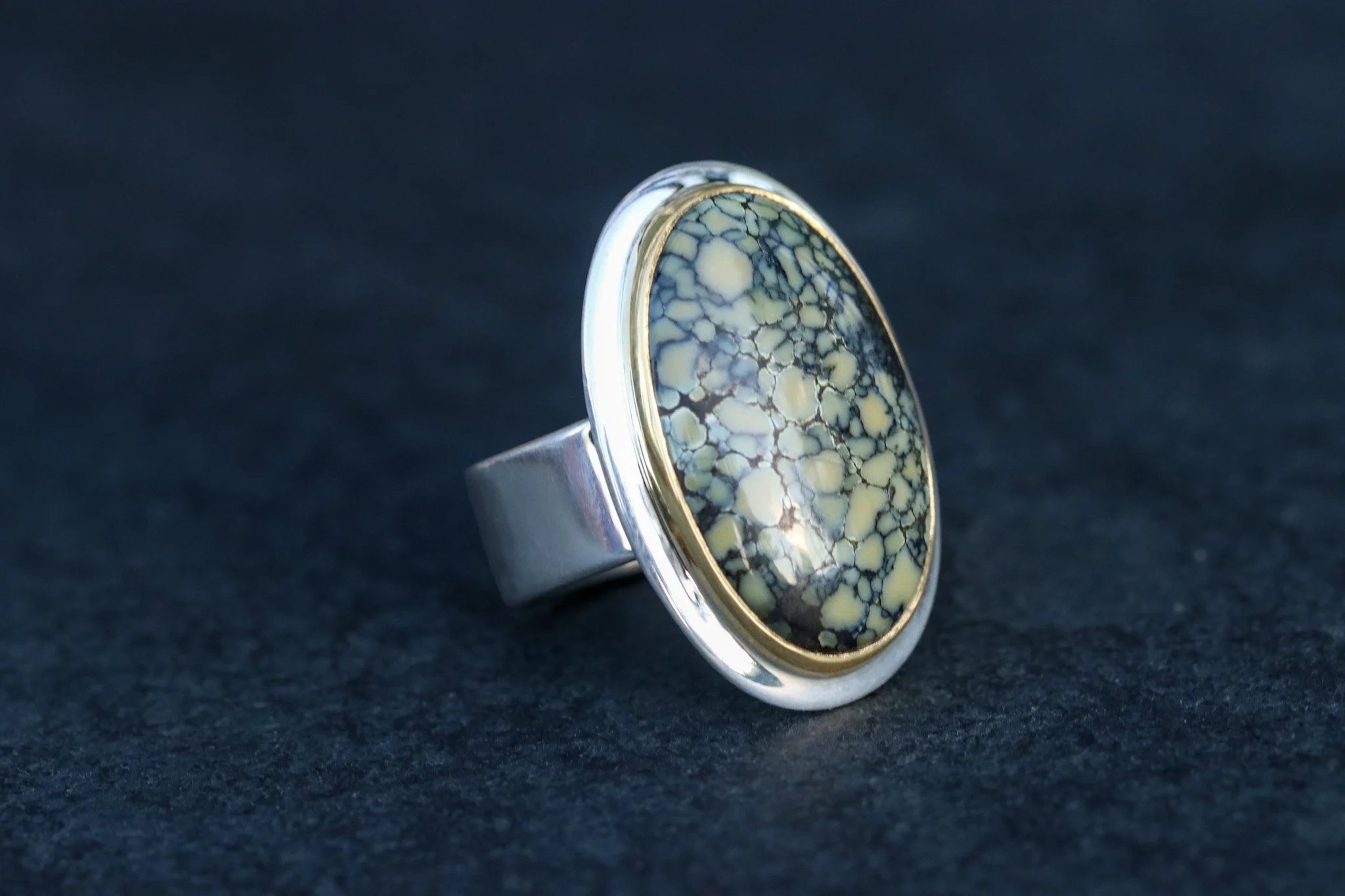 Variscite cabochon set 22K Gold and silver. Size 8.5